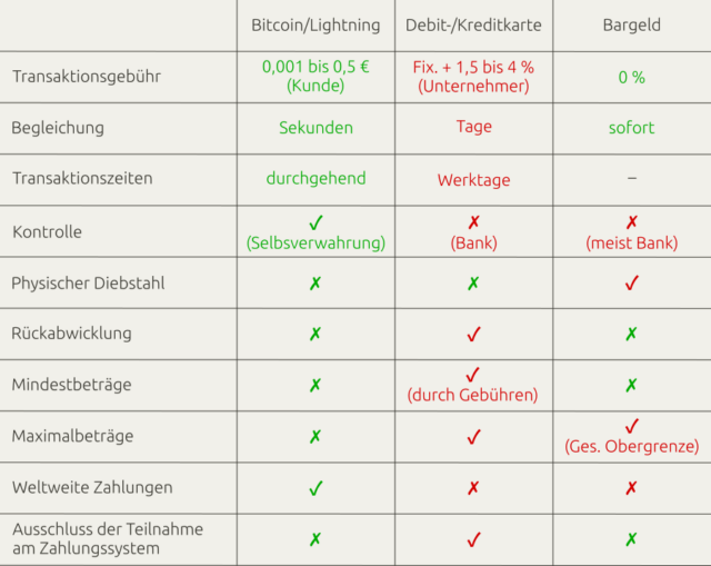 Bitcoin- und insbesondere Lightning-Zahlungen sind vergleichsweise kostengünstig.